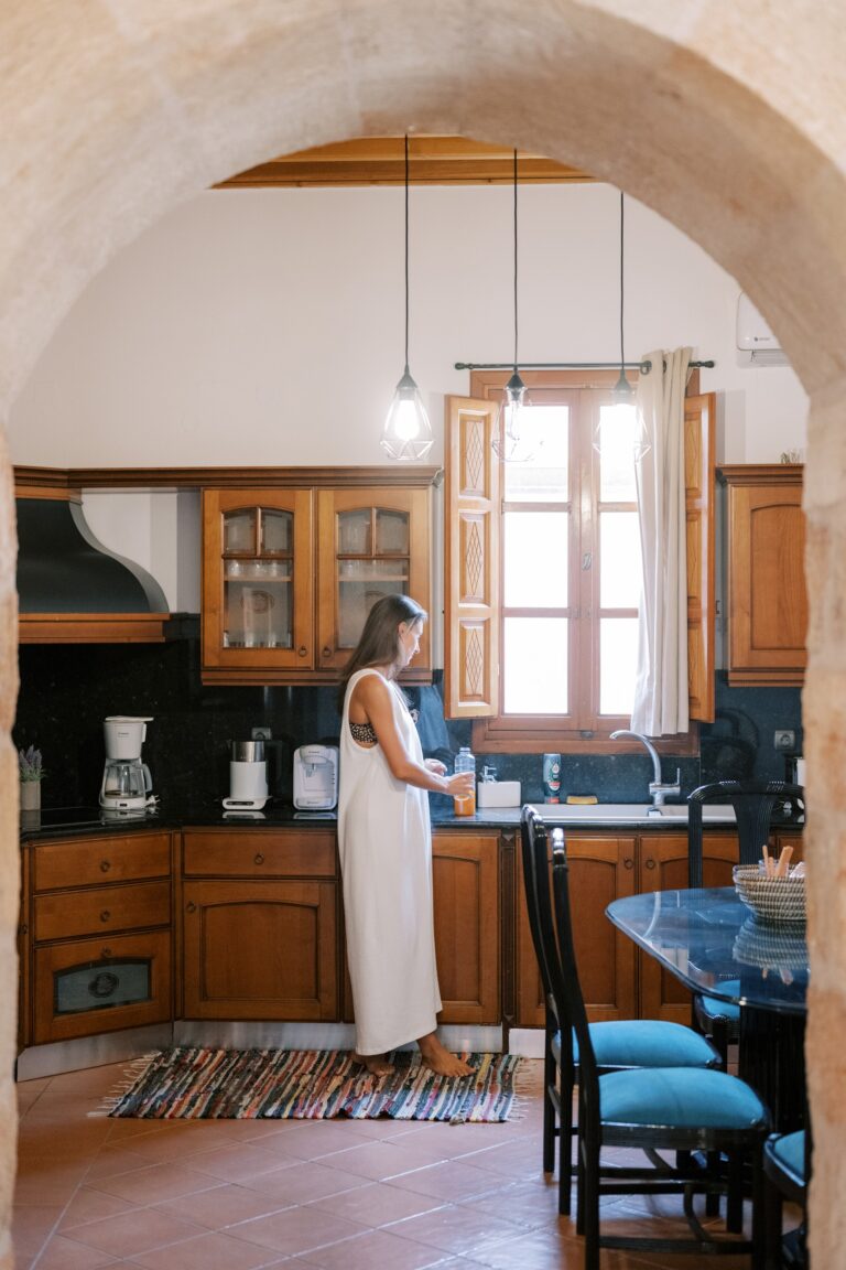 Ο παραδοσιακός σχεδιασμός συναντά την τοπική τέχνη σε έναν καθαρό, εκλεπτυσμένο χώρο. Μια μεγάλη τραπεζαρία προσκαλεί για κοινές στιγμές, ενώ η πλήρως εξοπλισμένη κουζίνα - με ευρύχωρο ψυγείο και συσκευές Smeg - κάνει το μαγείρεμα εύκολο και ευχάριστο.